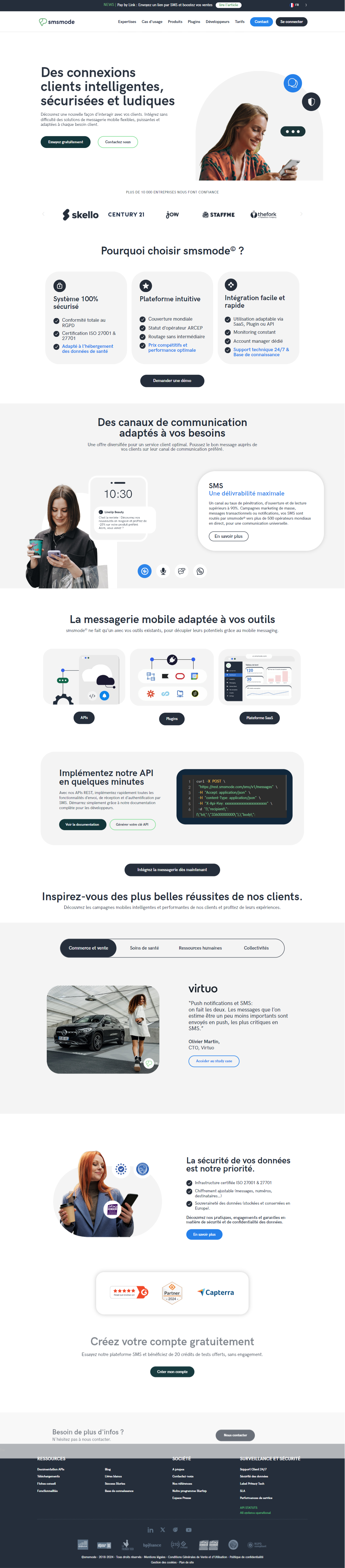 La nouvelle maquette, conçue par notre équipe de design, a été intégrée de manière fluide dans l’interface d’Elementor. Cette maquette a été élaborée pour offrir une navigation intuitive, mettant en valeur les services phares de SMS Mode tout en facilitant l’accès aux informations essentielles pour nos visiteurs.